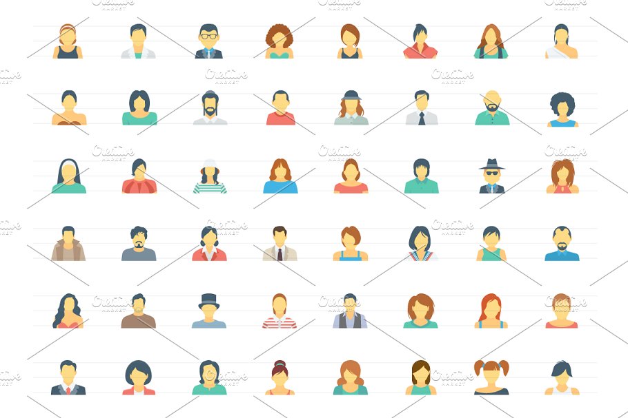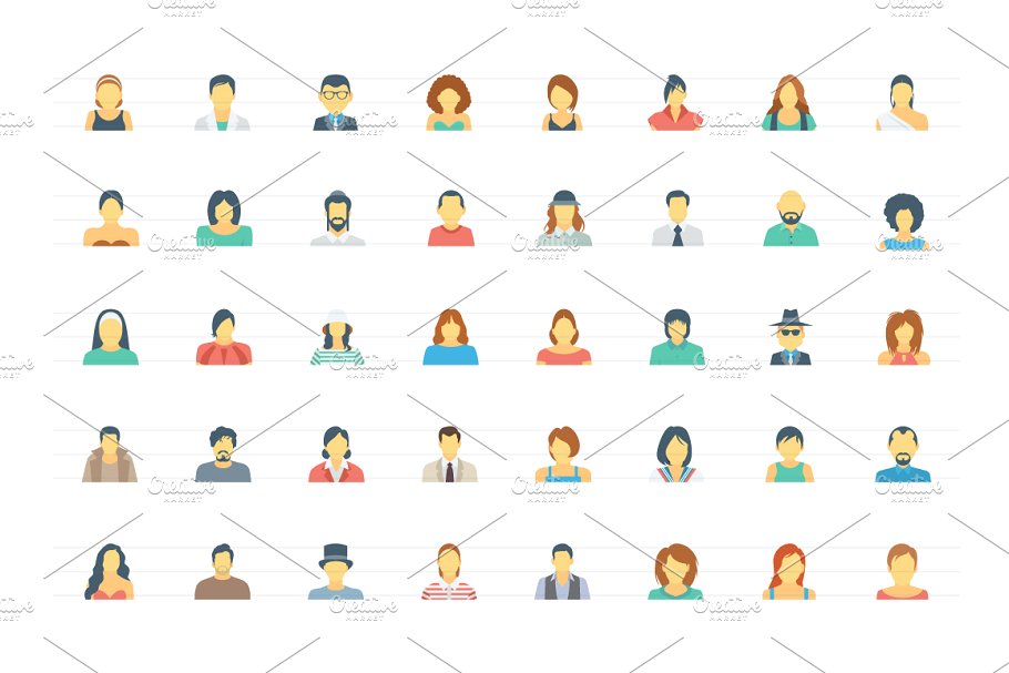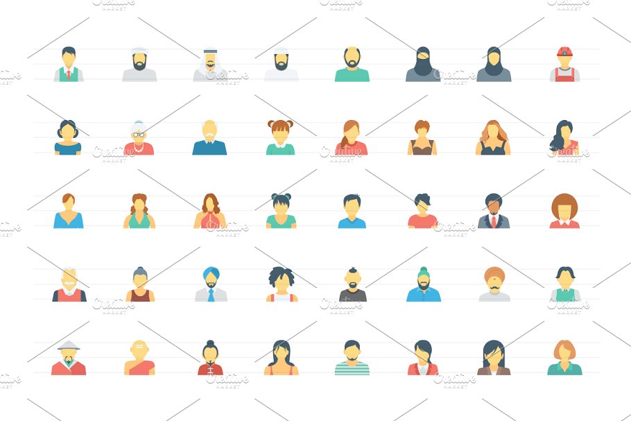 虚拟角色职业图标素材 120 Flat People Avatar Icons