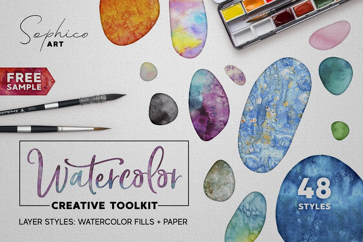 48个水彩纹理风格Photoshop图层效果