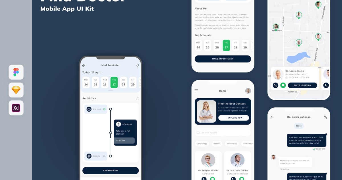 诊所应用程序医生入职和家庭APP UI KIT (FIG) Behance / 2022年10月20日 Ui Kits 79 0 0 Cecare就像医生的诊所智能护理应用程序。因此,医生可以接受预约,直到为患者提供总结。这些功能包括接受预约、创建就诊时间表、候诊室、消息、与患者的视频通话,直到健康追踪。它很容易定制,并且有很好的文档记录。