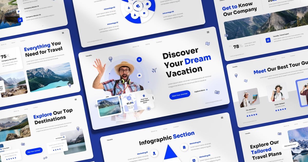 使用视差演示模板以专业、干净的方式展示您的作品。这是一个简单的现代但功能强大的设计,包括创意照片布局、信息图表、表格、矢量图标、图表和大量出色的功能,可以在另一个层面上展示您的工作和公司简介。