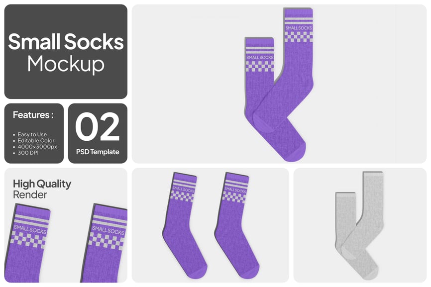 用这款*小袜子模型*来展示你的服装设计吧!它以简洁逼真的场景为设计风格,突出了面料的质感和印花细节。**非常适合用于婴儿服装、儿童系列或促销商品**,这款模型能确保你的作品呈现出专业的水准。