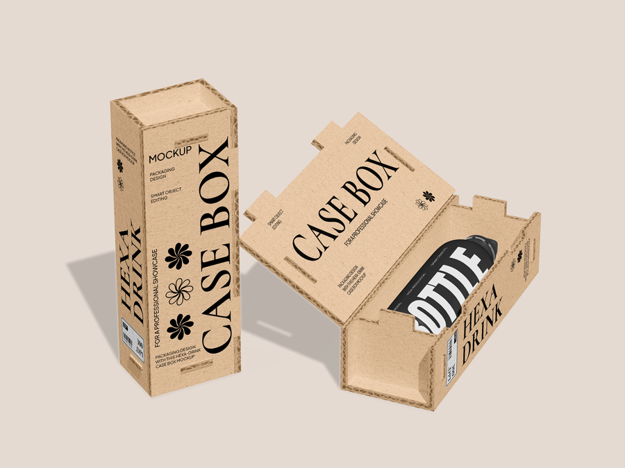 使用智能对象图层轻松应用您的艺术作品,更改框颜色,并调整背景设置以实现灵活的品牌展示。