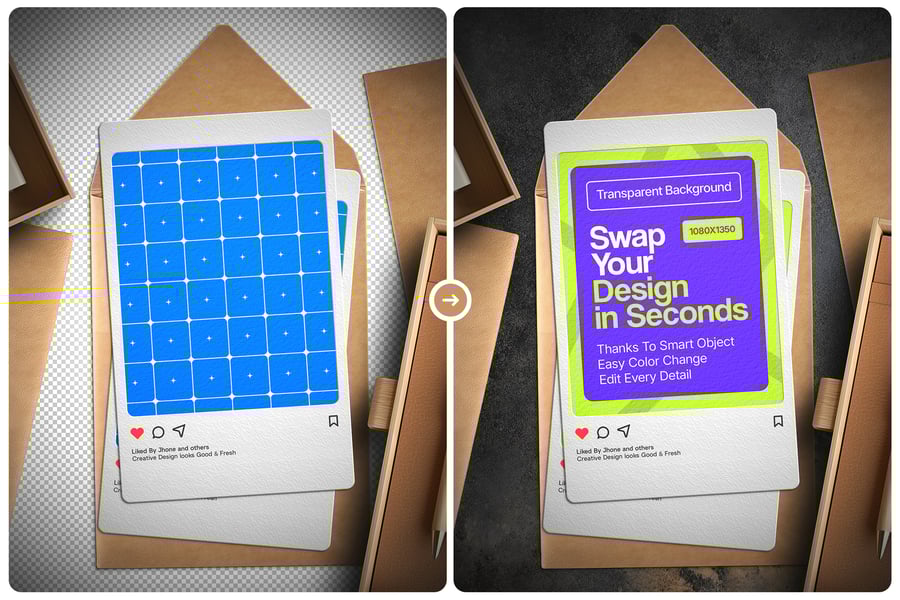 我们使用 Photoshop 的智能对象功能,将这些模型文件轻松编辑,您可以轻松替换设计和背景颜色,在几秒钟内打造您心仪的外观。这些文件高度可定制,让您可以随心所欲地打造不同的外观。只需遵循用户指南 (PDF) 即可。