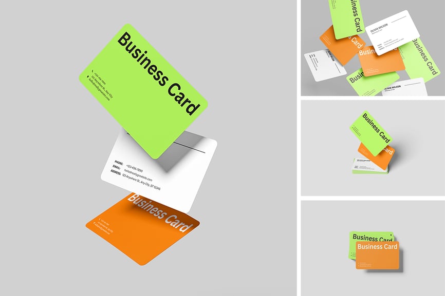在这些精美的库存模型上展示您的名片模型设计。此模型包含 4 个项目,并带有分层精美的 PSD 文件。此外,此模型还使用了智能对象功能,这意味着您只需几秒钟即可轻松快速地将现有设计更改为您自己的设计。