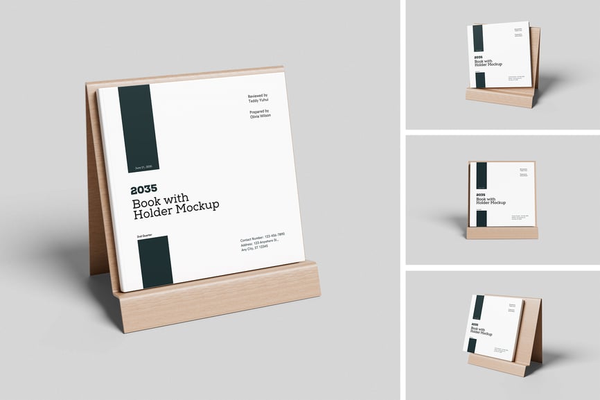 在这些精美的库存模型上展示您的带支架的书籍模型设计。此模型包含 4 个项目,并带有分层精美的 PSD 文件。此外,此模型还使用了智能对象功能,这意味着您只需几秒钟即可轻松快速地将现有设计更改为您自己的设计。