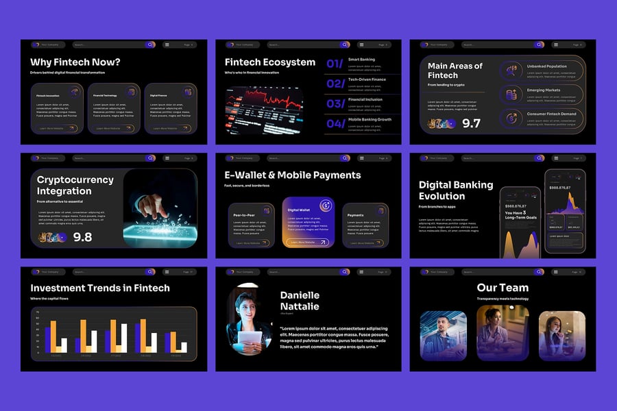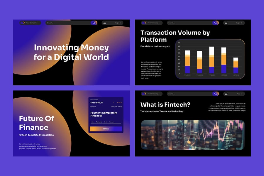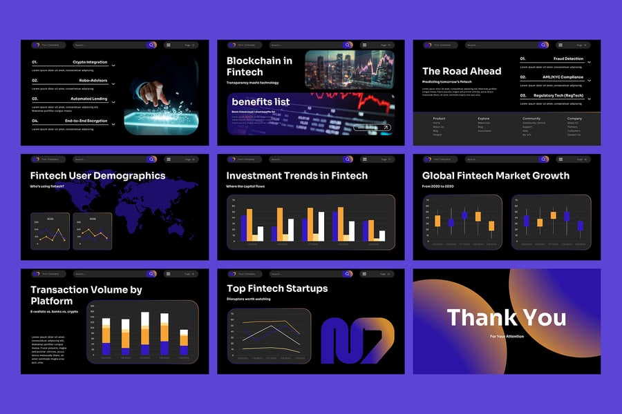 使用我们的金融科技演示文稿模板,打造强大而专业的金融推介。该模板旨在满足现代金融科技公司、初创企业和投资者的需求。这款金融科技 PowerPoint 和 Keynote 模板布局简洁,采用现代信息图表、财务图表和数据驱动的幻灯片设计,可帮助您清晰有力地传达复杂的想法。