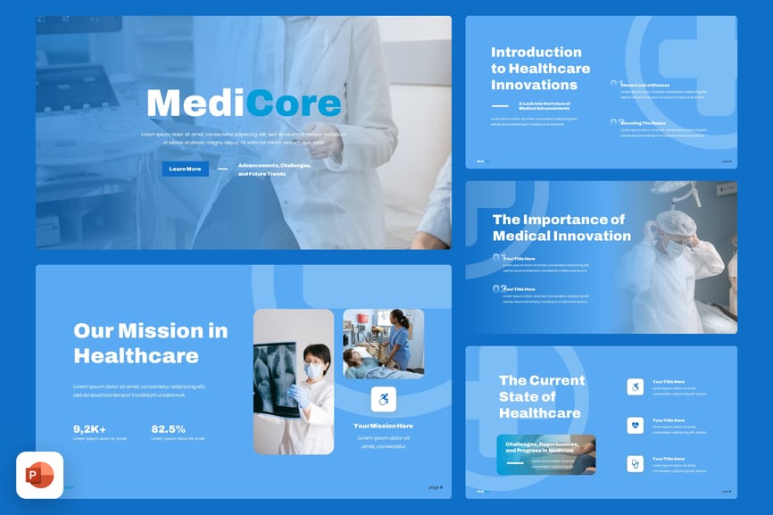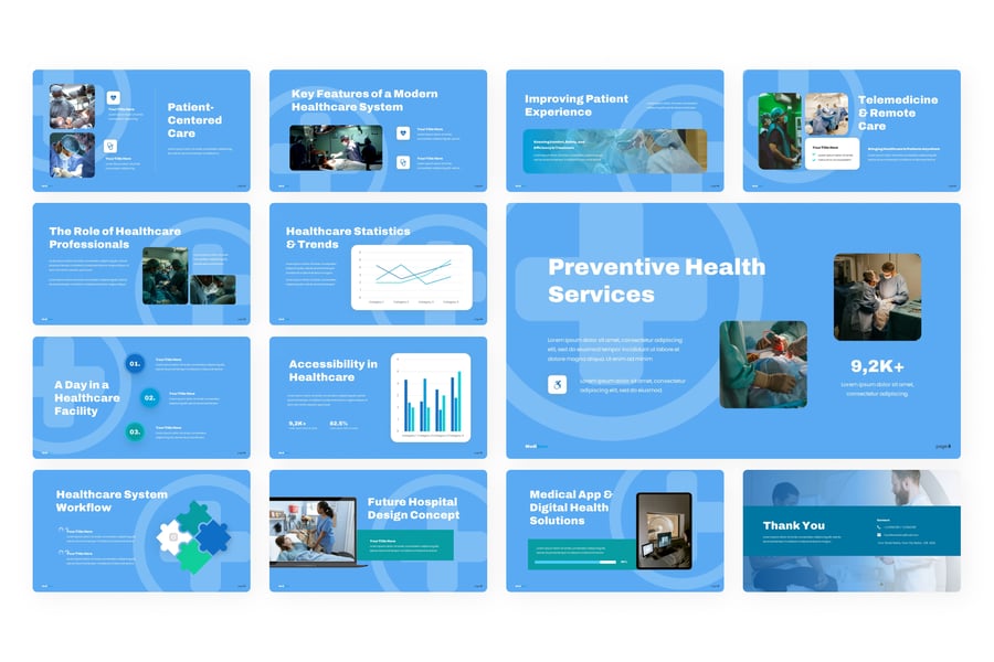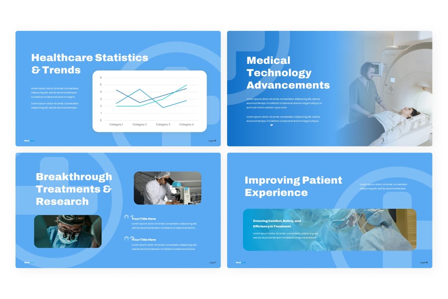**用例**:此模板非常适合医疗专业人士、医疗机构和技术创新者展示医疗技术、远程医疗解决方案、患者护理改进和医疗保健统计数据方面的进展。它可用于展示研究成果、概述医院设计理念、介绍新的医疗应用程序、在行业会议上进行演示、举办健康教育研讨会、向投资者推介医疗保健创新、为医务人员创建内部培训材料以及报告医疗保健趋势和政策。