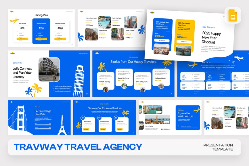 是一种创意风格的演示模板,非常适合旅行、旅游、商务演示、样本幻灯片、项目推介以及更多用途。