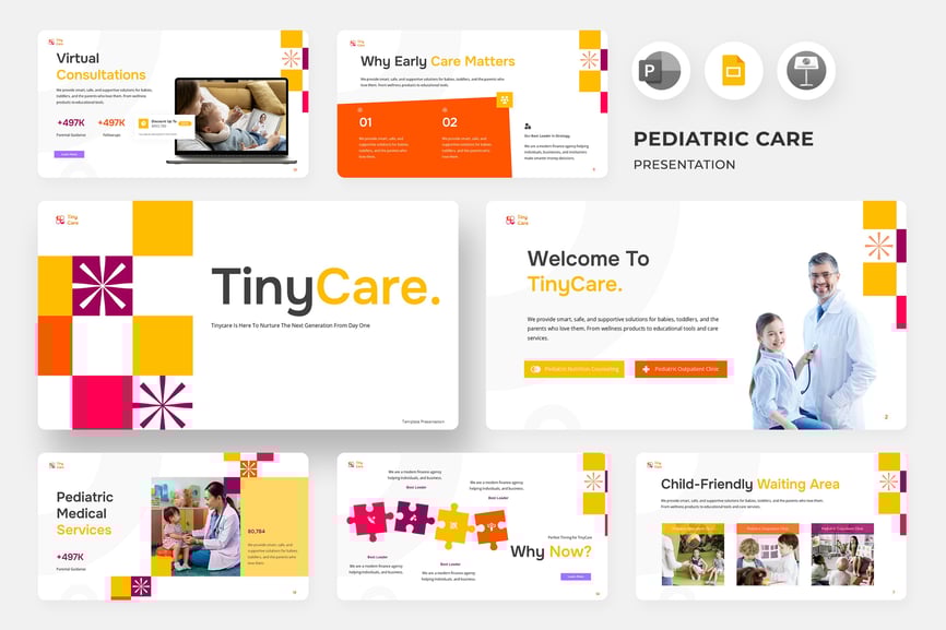 **儿科护理演示模板**是一款简洁、现代且高度专业的 Google 幻灯片模板,旨在满足医疗保健专业人士、儿科医生、诊所、医院、医疗初创公司和健康中心的需求。此演示文稿非常适合展示儿科护理服务、儿童健康项目、医疗案例研究、医疗保健业务提案等。