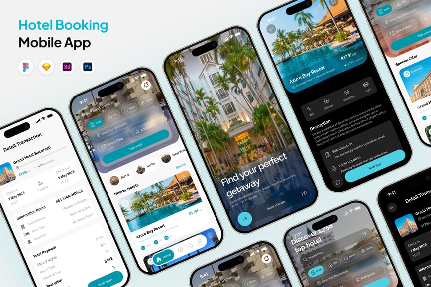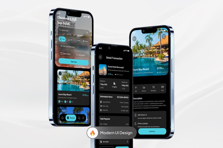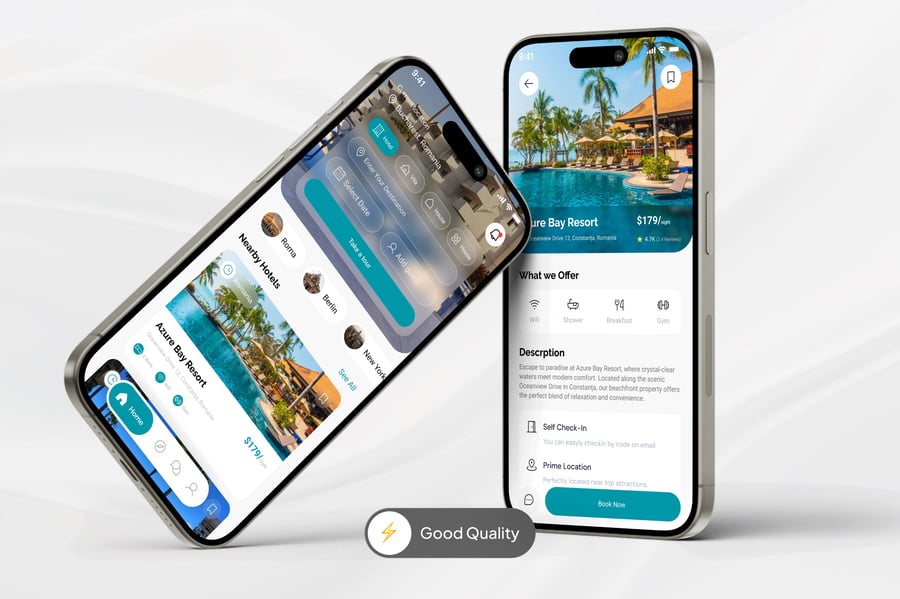 酒店预订应用程序是一个无缝衔接的移动平台,旨在简化用户在全球范围内查找、比较和预订住宿的方式。该应用程序界面简洁直观,用户只需轻点几下即可按位置、日期、评分、价格和设施搜索酒店。