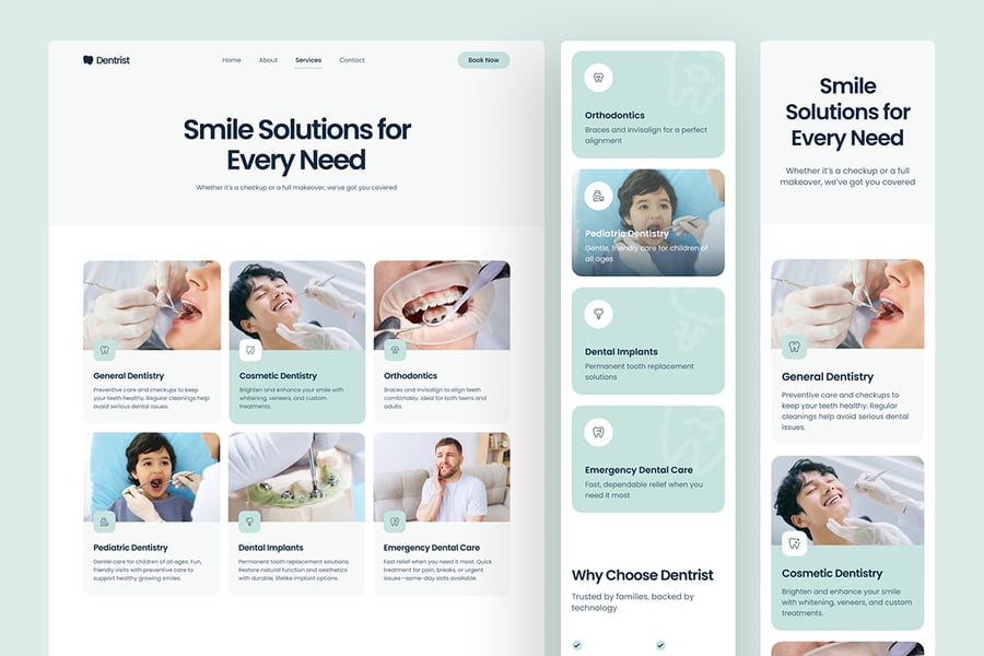 无论您是启动第一个诊所网站还是重新设计过时的诊所网站,Dentrist 都能为您成功奠定坚实的基础。