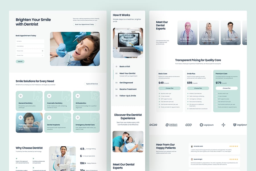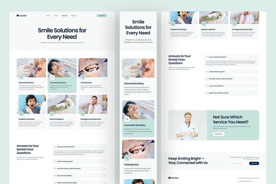 这款灵活而现代的 Figma 模板非常适合希望构建高信任度牙科网站的医疗保健专业人士和网页设计师。