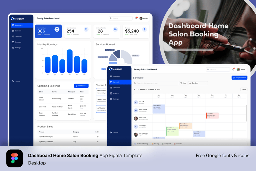 一款时尚现代的 Figma 沙龙预约治疗师仪表板模板,专为在家预约沙龙服务而设计。该模板包含两个桌面页面——仪表板主页和日程安排时间线——提供全新、时尚的设计,非常适合时尚地管理预约和客户互动。