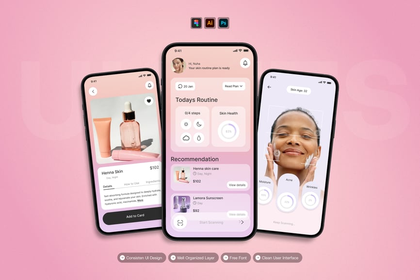 **美妆服务** UI 套件的设计注重易用性和一致性,让您轻松创建美观实用的移动应用。每个元素都经过精心设计,完全可定制,并可根据您的品牌进行调整。无论您是设计社交应用、电商应用还是生产力工具,此套件都能让您灵活地将创意轻松转化为现实。