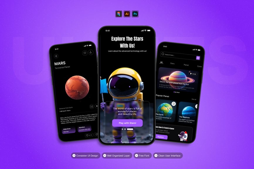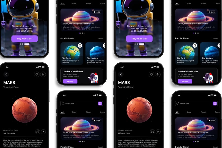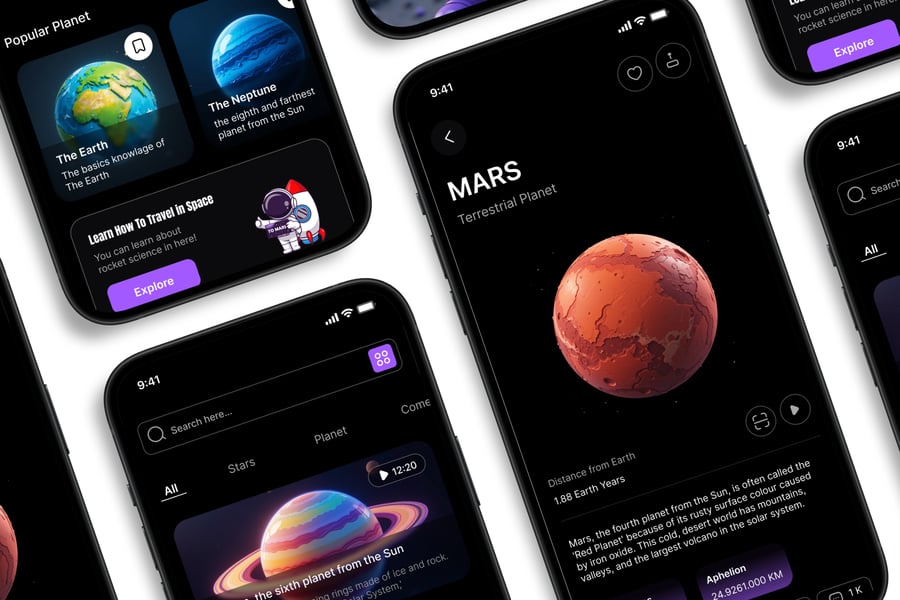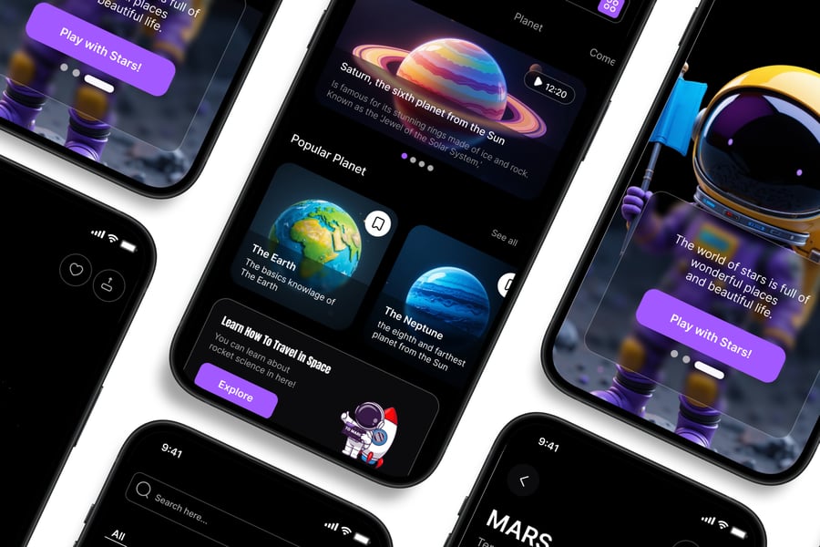隆重推出 **Space Learning** 移动应用 UI 套件,它是一款现代化且功能丰富的解决方案,可用于创建简洁、用户友好的应用界面。对于希望加快设计流程的设计师和开发者来说,这款 UI 套件完美契合,它在一个有序的软件包中提供了所需的所有基本组件。