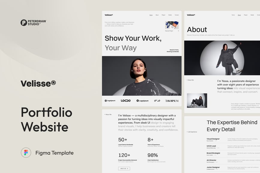 使用 Velisse,清晰自信地展示您的创意个性。Velisse 是一款高级 Figma 作品集网站 UI 模板,专为设计师、视觉艺术家和创意专业人士打造。该模板专为桌面视图设计,包含五个精致且目标明确的页面,每个页面都经过精心设计,旨在通过简洁现代的界面展现您独特的技能、价值观和视觉风格。