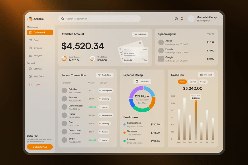 文件包含: 财务管理仪表板 Envato.fig 财务管理仪表板字体