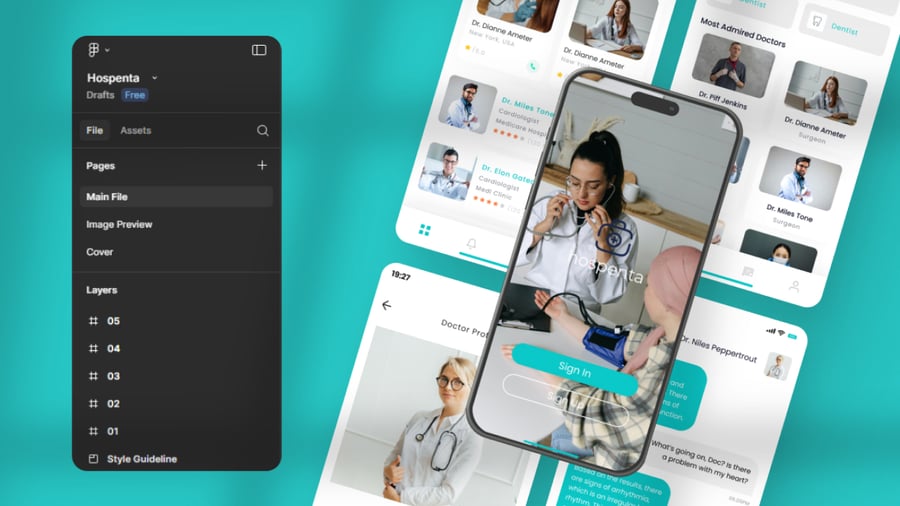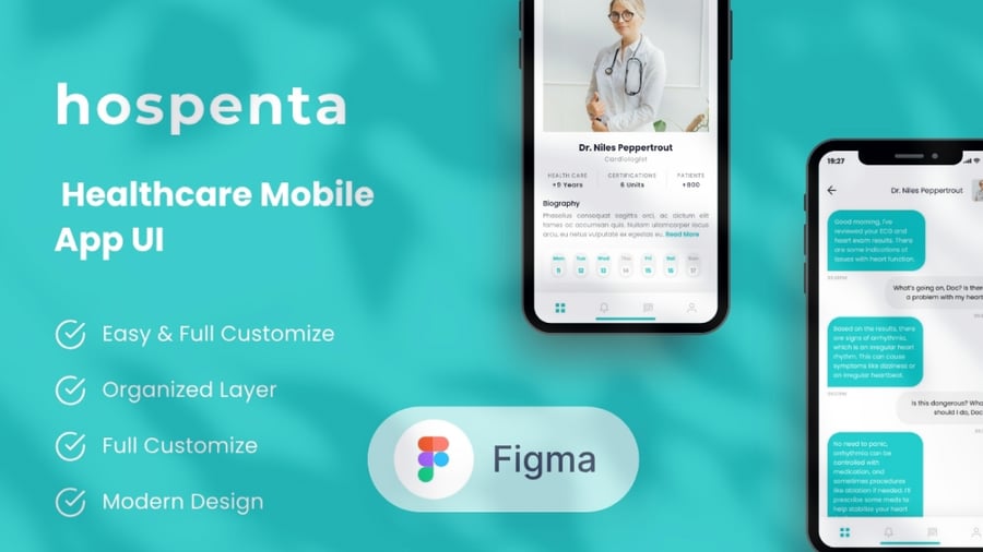 Hospenta Healthcare 移动应用 UI 套件,设计简洁、色彩鲜艳、现代感十足,包含高质量的界面。该套件易于定制,可满足您的各种需求。易于在 Figma 中使用。