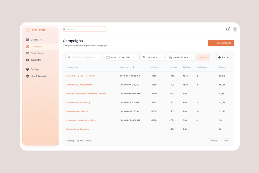 仪表板电子邮件营销和时事通讯应用程序