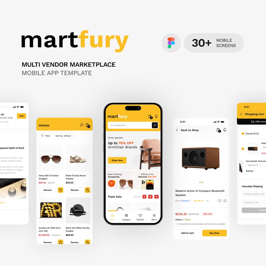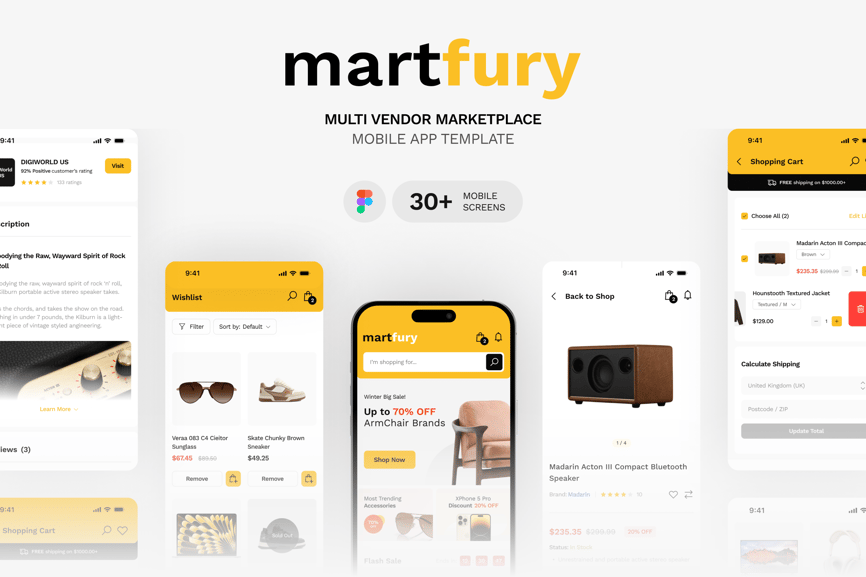 **描述:** Martfury 是一款简洁现代的电子商务 Figma 模板,适用于 Marketplace 移动应用