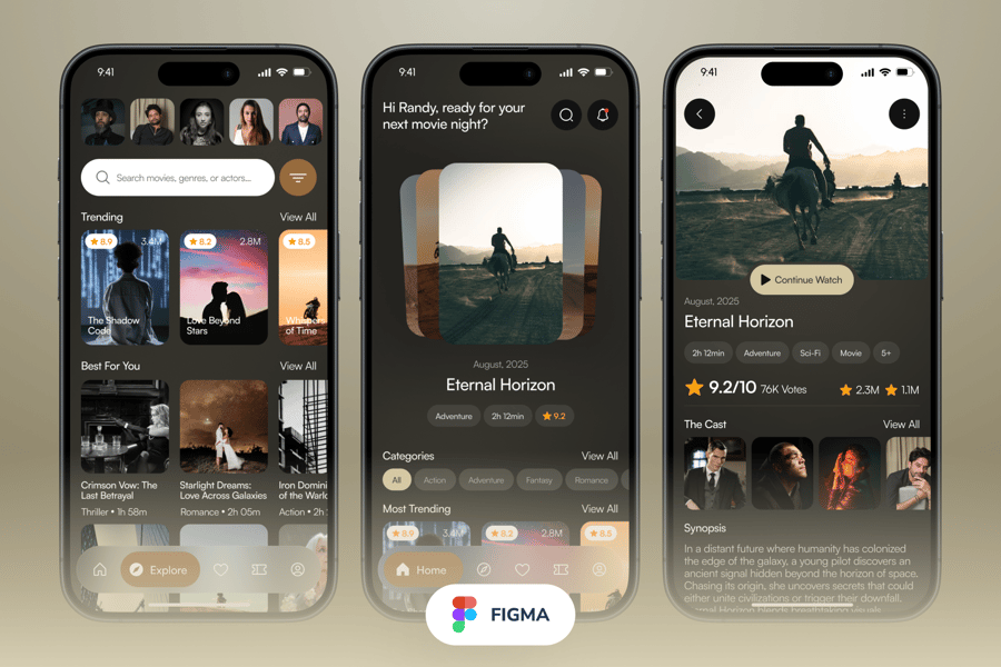 Movari 是一款简洁现代的 UI 设计,专为影视流媒体应用打造。它拥有大胆的视觉效果和直观的布局,非常适合展示热门影片、个性化推荐和流畅的播放交互。