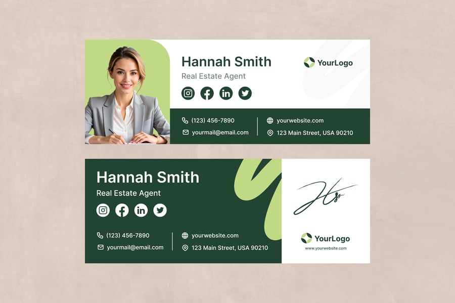 专业的房地产电子邮件签名不仅仅是一个结束语;它是一张数字名片,能够强化您发送的每条信息的信任和可信度。通过添加您的全名、职称、经纪公司、联系方式和社交媒体链接,您可以为客户创建一条便捷的联系路径。添加专业的头像、公司徽标和低调的品牌色彩,可以确保您的签名在保持优雅的同时脱颖而出。通过合适的设计,您的电子邮件签名将成为强大的营销工具,增强品牌形象并留下持久的印象。