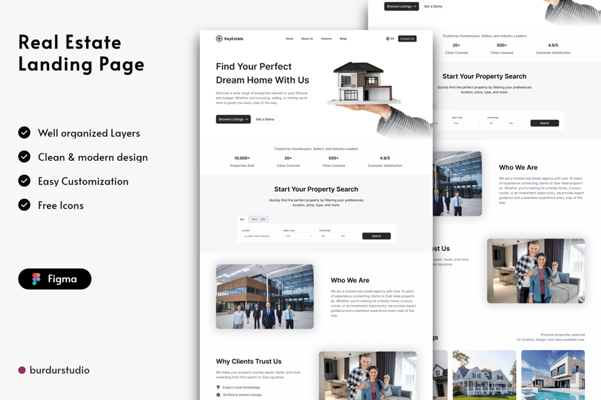 **此模板是一个简洁却专业且现代的网站。**您可以在 Figma 中编辑它。轻松插入内容、更改颜色,所有模板均已包含,可随时与您的受众分享。完全兼容、可编辑且像素完美。此外,它们组织有序,命名和分组都经过精心设计。