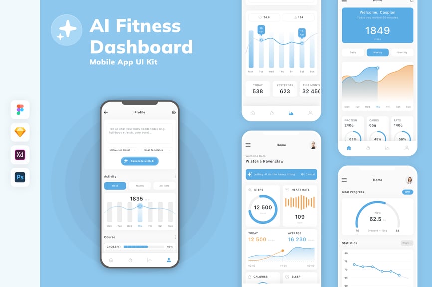 AI Fitness Dashboard 移动应用程序 UI 套件