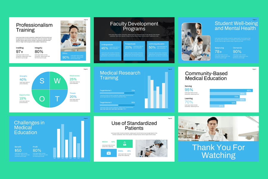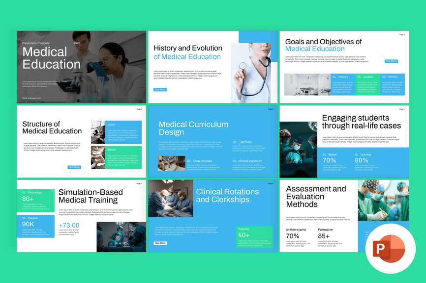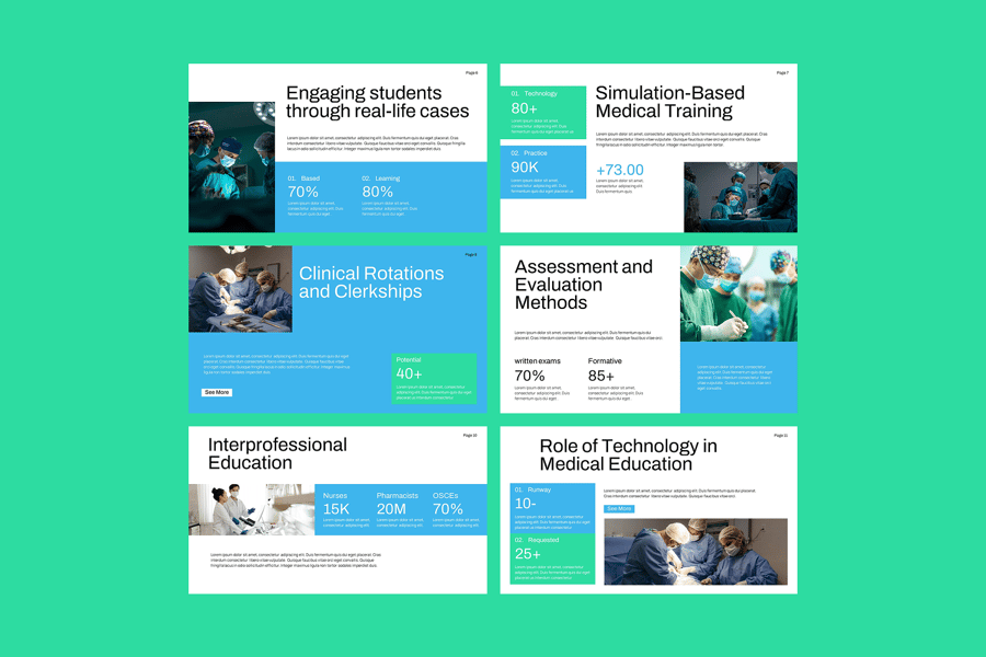 使用医学教育演示模板,打动投资者并传达您的愿景。医学教育演示模板专为教育工作者、医疗机构、培训师和医疗保健专业人士设计,旨在以结构化且视觉引人入胜的形式传递复杂的医学知识。此模板非常适合讲座、临床培训、学术研讨会、继续医学教育 (CME) 项目或学生演示,包含学习目标、解剖学和生理学、疾病病理学、诊断技术、治疗计划和临床案例研究等重要部分。