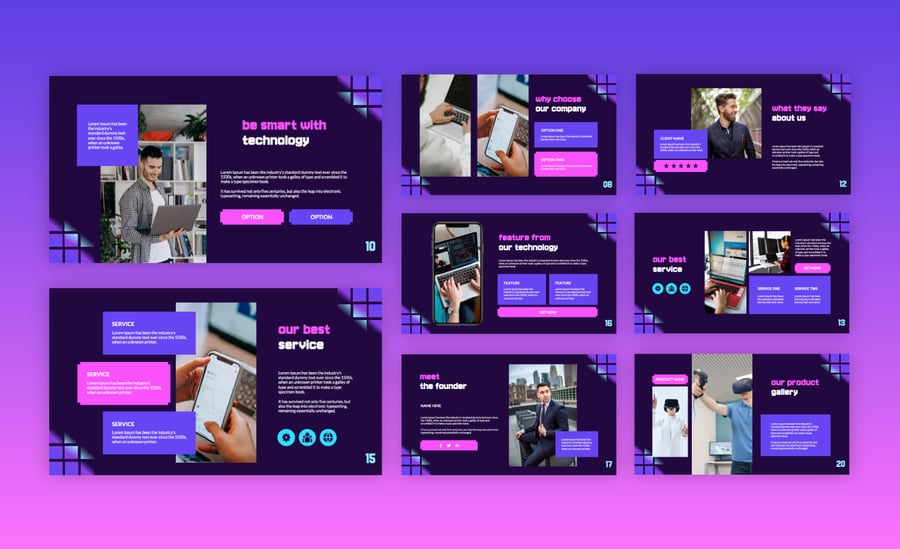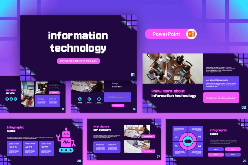 信息技术 PowerPoint 模板布局灵活专业,适合各种内容,尤其适合开发人员、科学家、研究人员以及许多其他行业。该模板格式丰富,易于自定义,可帮助您自信清晰地表达想法。
