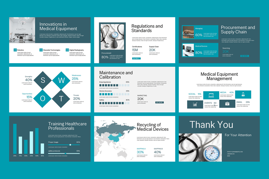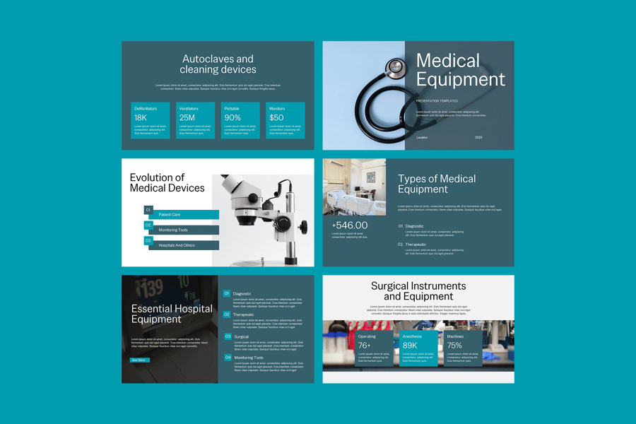使用医疗设备演示模板,打动投资者,传达您的愿景。医疗设备演示模板专为医疗保健公司、医疗供应商、医院管理人员和销售专业人员设计,清晰专业地展示医疗产品和创新成果。非常适合用于产品目录、投资者演示文稿、贸易展材料、临床培训或销售演示。