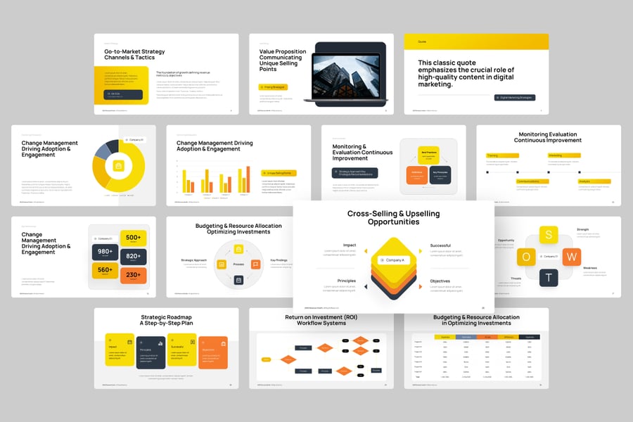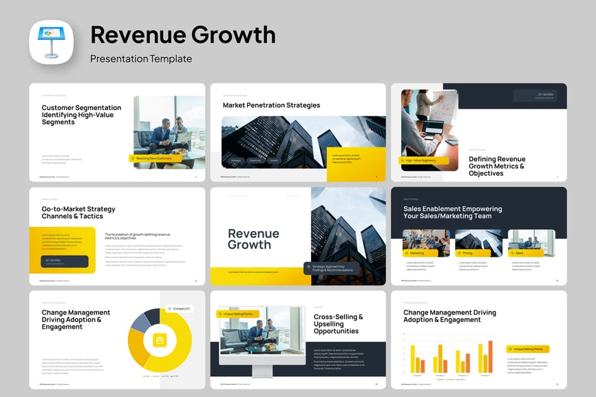 收入增长业务演示模板专为希望有效传达业绩和增长趋势的财务专业人士和业务战略家量身定制。该模板采用现代化、以数据为中心的布局,包含可编辑图表、KPI 视觉效果和增长地图幻灯片,使复杂的数据清晰易懂。使用它来推动投资对话、季度回顾或战略规划会议。