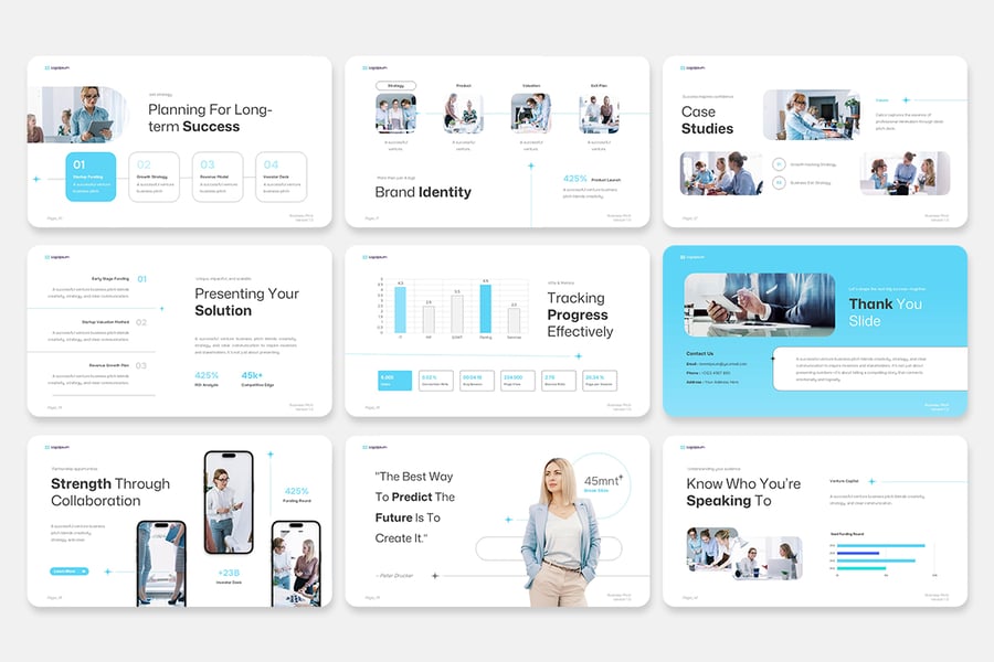 该模板非常适合初创公司、投资者、风险投资公司、企业融资和商业提案,是以简单、有效且投资者友好的方式传达复杂数据的终极工具。