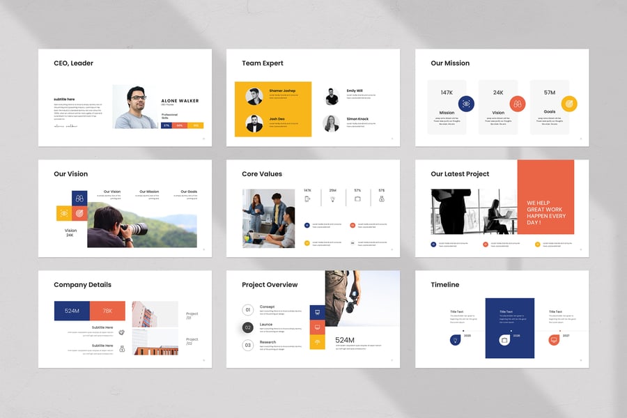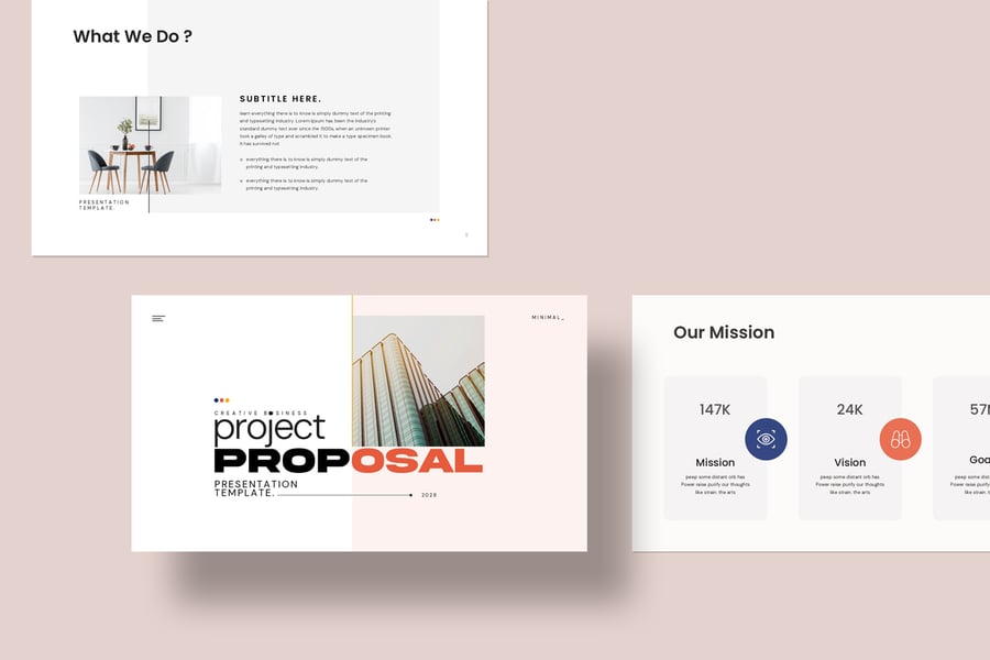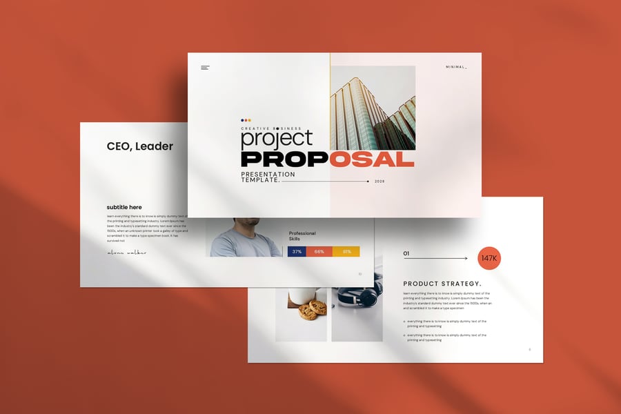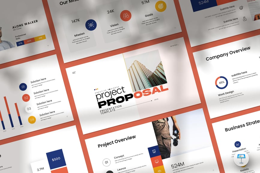 使用项目提案演示模板,以专业简洁的方式展示您的作品。这款模板设计简洁现代,功能强大,包含创意照片布局、信息图表、表格、矢量图标、示意图以及大量实用功能,可将您的作品和公司简介提升到一个新的高度。