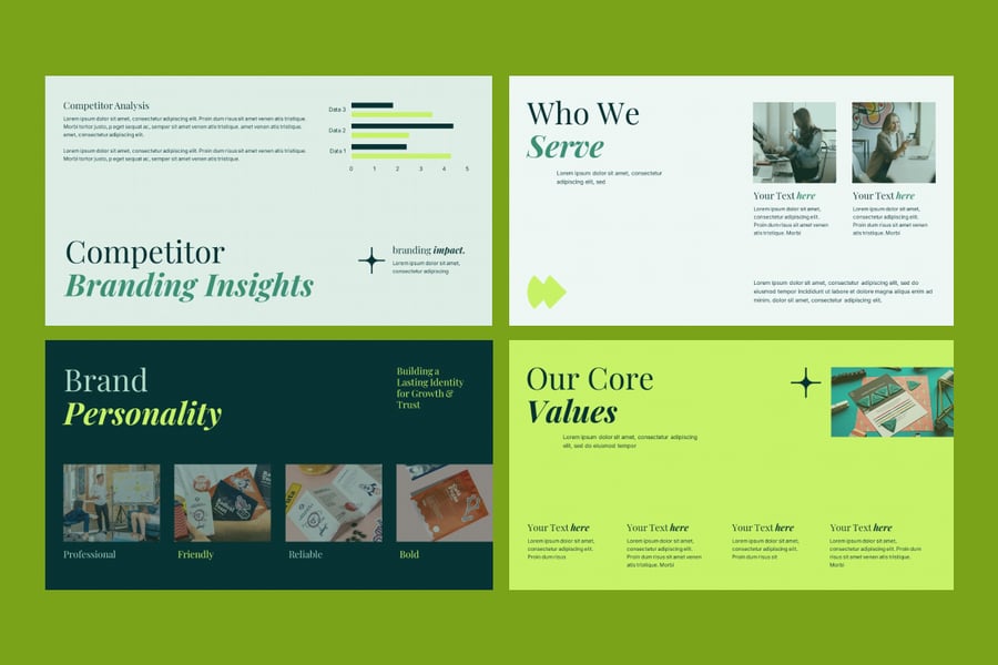 使用公司品牌 PowerPoint 演示文稿模板,自信地展示您的品牌。该模板采用现代、专业、简洁的美感设计,是创建令人印象深刻、令人印象深刻的品牌演示文稿的理想工具。它非常适合企业、初创公司、创意机构、营销团队和企业专业人士,可让您以清晰一致的方式展示您的品牌标识、视觉指南、公司价值观、产品组合和营销策略。该模板拥有独特的幻灯片,包含品牌故事、徽标使用、配色方案、字体排版、图像指南、模型、图表和团队简介等基本布局。每张幻灯片均可完全自定义,让您可以灵活地根据公司独特的品牌形象调整设计。凭借其简约的设计方法和结构化的布局,该模板可确保您的品牌演示文稿看起来精致、专业且切中要点。