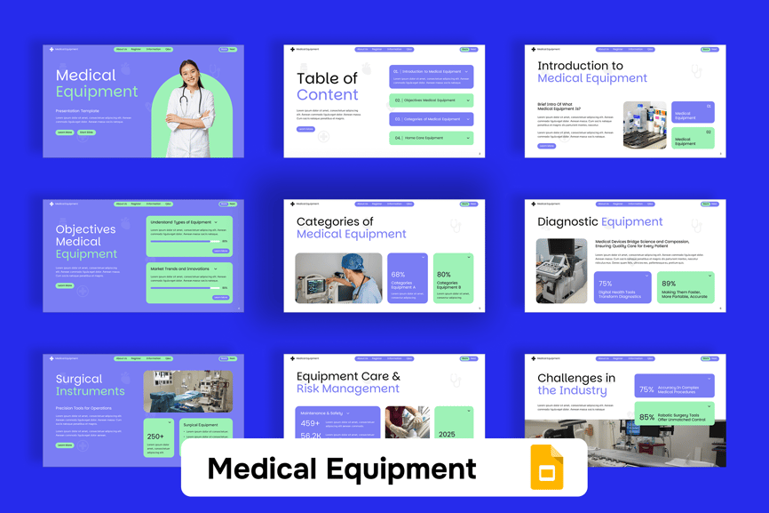 **医疗设备 Google 幻灯片演示模板**