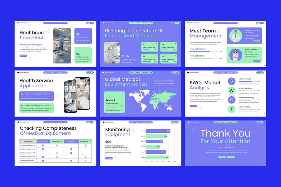 通过简洁的医疗主题布局、产品展示幻灯片、对比图表和技术驱动的信息图表,您可以清晰易懂地展示复杂的医疗设备功能。无论您是在准备产品发布、医院采购提案、投资者推介还是医疗会议演示,此模板都能确保您的信息看起来可信且具有影响力。它包含专业设计的幻灯片,具有现代布局、视觉上引人入胜的图形和可编辑图表,可增强故事叙述和数据可视化。此模板完全可定制以适合任何行业,使您能够制作出吸引注意力并推动成果的成功推介。适用于医疗设备谷歌幻灯片、医疗保健演示模板、医疗产品展示幻灯片、医院设备演示、生物技术谷歌幻灯片模板、制药推介平台、医疗技术幻灯片、医疗创新演示、医疗保健谷歌幻灯片模板、医疗设备演示。
