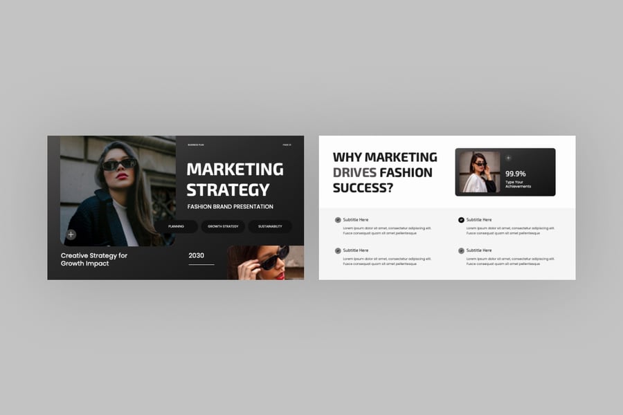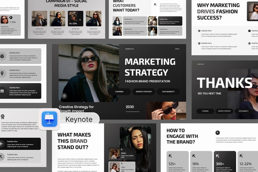 这款现代优雅的 Keynote 模板助您自信地传递品牌故事。它专为时尚营销需求而设计,兼具简洁与时尚,彰显您的品牌形象。非常适合用于广告活动、宣传和创意作品集。