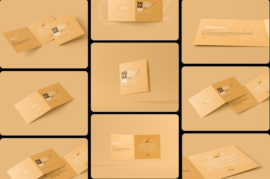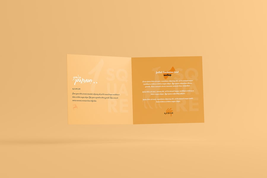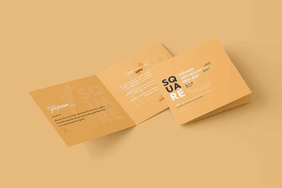 使用我们的方形折叠邀请卡模型自信地展示您的设计!