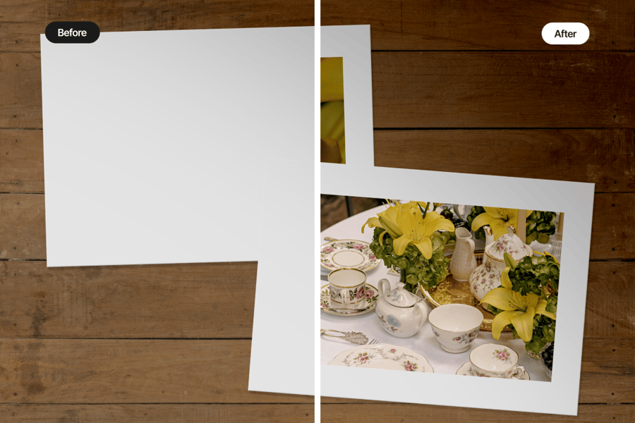 这套 PSD 模型包含十张高质量的纸质照片设计,背景均为真实的木地板。该模型展现了温馨宜人的生活场景,从闪耀的烛光到优雅的茶室,并辅以逼真的纸张纹理、自然的阴影和细致的木纹。
