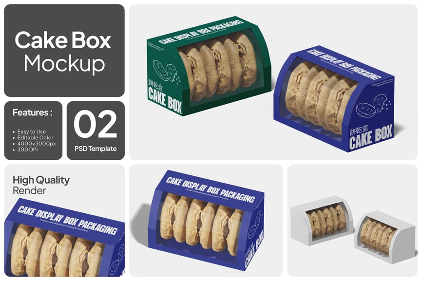用这款*蛋糕盒模型*来展示您的烘焙包装设计,其风格旨在突出甜点和糕点盒上的品牌。**非常适合糕点店、咖啡馆或食品配送服务**,这款模型可确保您的作品看起来既诱人又专业。