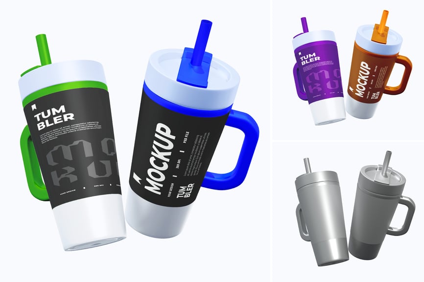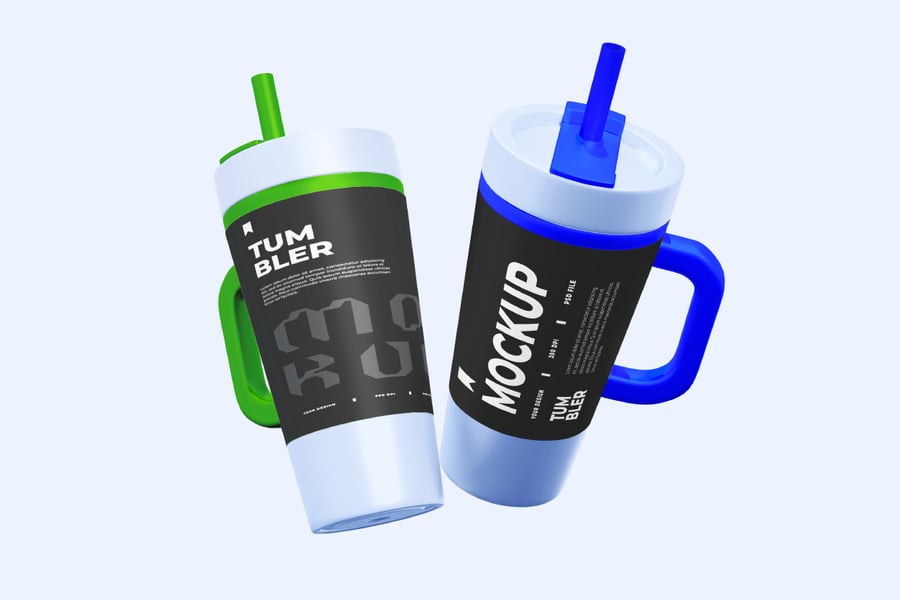 专业的单场景玻璃杯模型,以带手柄和吸管的现代杯子为特色。非常适合展示徽标、品牌或包装设计。可通过智能对象轻松自定义,并可编辑颜色和背景。