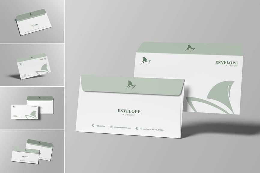 用时尚的方式展示您的信封模型!只需几秒钟,即可为您的客户创建逼真的信封模型展示。这些 PSD 文件使用智能对象功能,因此您可以轻松快速地替换模型内容。非常简单!您只需双击智能对象,粘贴您的作品,保存即可完成。