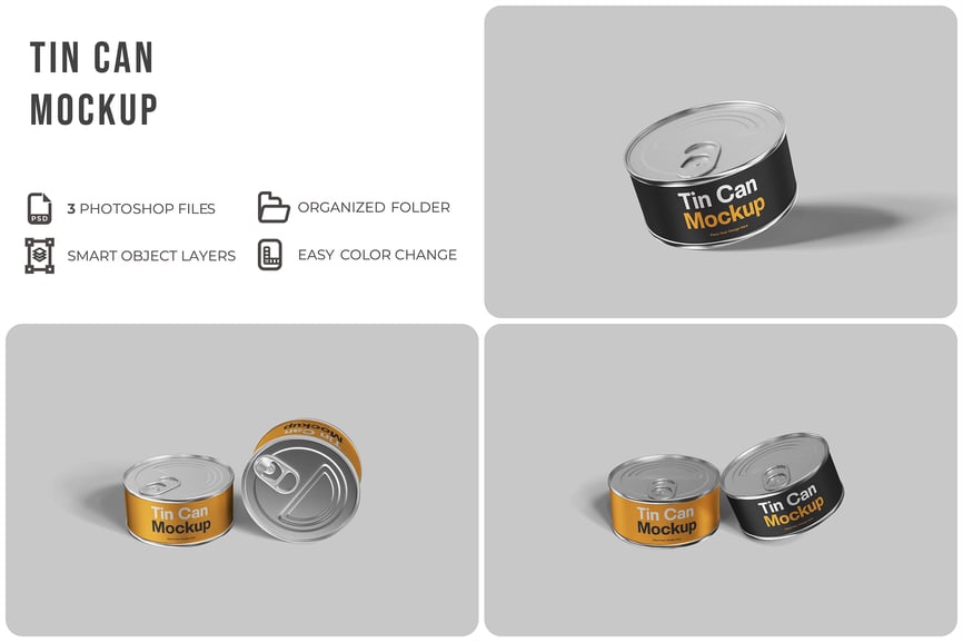 这些是具有奢华概念的逼真的圆形锡罐模型,适合用作平面设计师的徽标设计演示文稿。请下载并欣赏!