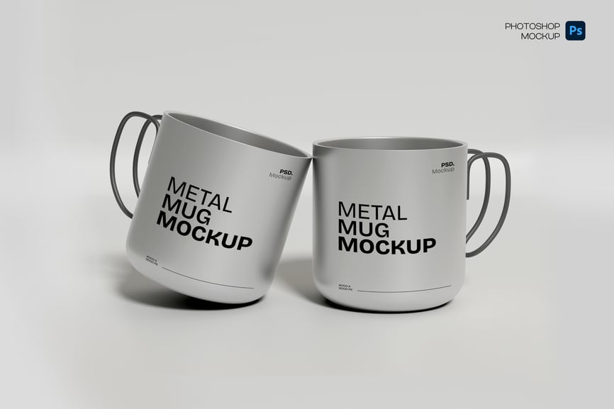 用这款**金属杯样机**展示您的设计成果。文件包含用于彩色对象和背景的独立图层。标签的智能图层有助于应用您的设计,并且易于使用。