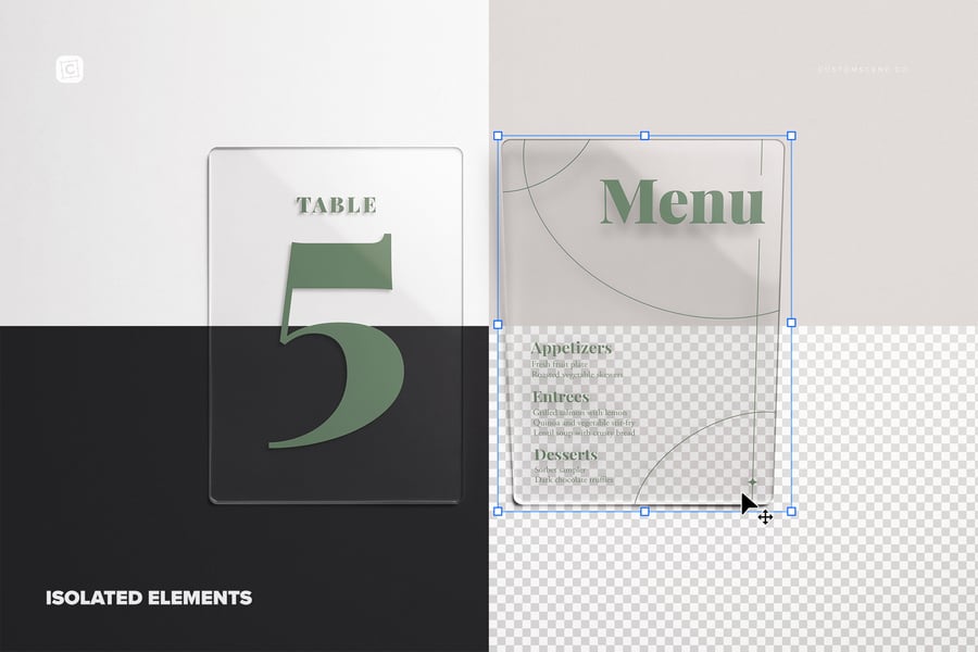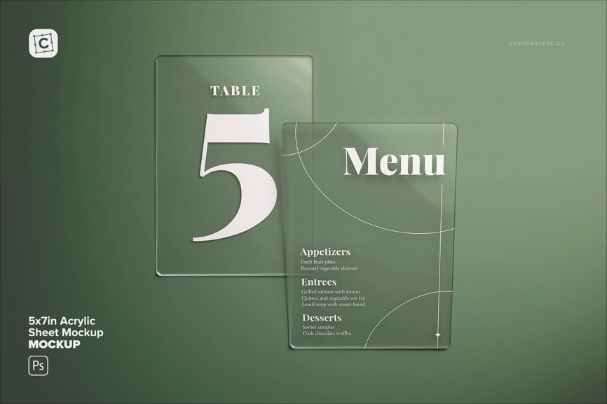 使用我们的 5×7 英寸亚克力板样机,释放您的创造力!这款多功能样机为您的设计提供逼真透明的亚克力表面,非常适合用于标牌、活动菜单、桌号和品牌展示。您可以自定义颜色、调整深度、反射和光线,打造真正精致的效果。无论您是婚礼创意人员、文具设计师还是产品造型师,这款样机都能助您打造清晰的演示文稿。此外,它兼容 Photoshop、Affinity Designer 和 Procreate,是所有数字设计爱好者的理想之选!让您的设计成为众人瞩目的焦点。