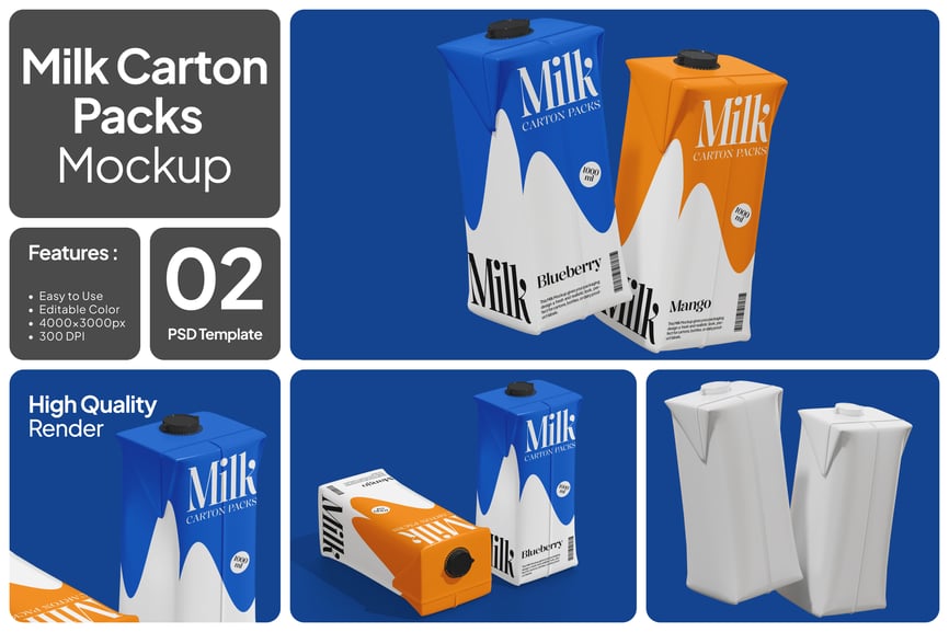 用这款“牛奶纸盒模型”来展示您的饮料包装吧!它简洁逼真,风格独特。**非常适合乳制品品牌、果汁包装或环保产品发布**,它能让您的作品看起来更专业,更符合市场需求。