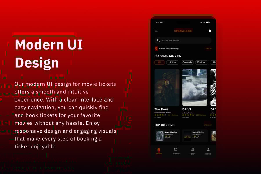 Cinema Click 将易用性与醒目的视觉设计相结合,使其成为电影票预订的首选。流畅的导航和美观的设计元素确保用户享受流畅愉悦的体验。无论您是影院运营商还是电影应用程序开发者,Cinema Click 都能提供专业且引人入胜的解决方案。