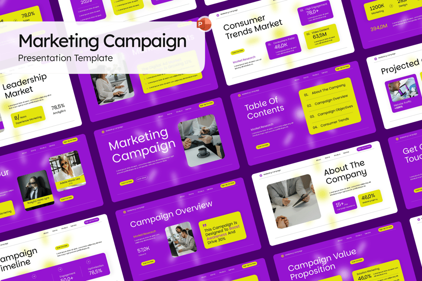 使用营销活动 PowerPoint 演示文稿模板,启动您的下一个营销活动,使其更具影响力。此模板专为营销团队、数字代理机构、品牌经理和商务人士设计,可帮助您以专业且引人入胜的方式展示营销策略、营销活动目标和绩效成果。模板包含完全可自定义的幻灯片,涵盖成功营销活动的所有关键要素:营销活动目标、目标受众、营销渠道、预算分配、关键绩效指标 (KPI)、绩效跟踪、竞争对手分析和投资回报率 (ROI) 报告。现代而富有创意的设计确保您的信息脱颖而出,同时保持简洁专业的界面。借助可编辑的图表、信息图、时间线和模型,您可以轻松地将复杂的数据转换为视觉效果,从而吸引注意力并推动行动。无论您是在准备营销宣传、活动提案还是成果演示,此模板都是传达您的愿景并赢得客户信任的终极工具。它包含专业设计的幻灯片,可用于展示您的公司概况、价值主张、问题和解决方案分析、目标市场、商业模式、竞争格局、财务预测以及团队介绍。该模板拥有现代化的布局、引人入胜的视觉图形和可编辑的图表,增强了叙事和数据可视化的效果。该模板可完全自定义,适合任何行业,助您打造引人入胜、成果显著的宣传方案。适用于营销活动 PowerPoint、营销策略演示文稿、数字营销 PPT 模板、广告活动幻灯片、活动提案 PowerPoint、社交媒体营销演示文稿、活动策划 PPT、商业营销幻灯片、创意营销 PPT、活动成果演示文稿和品牌战略 PowerPoint。