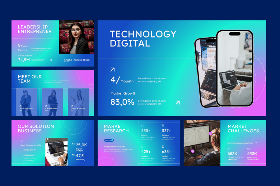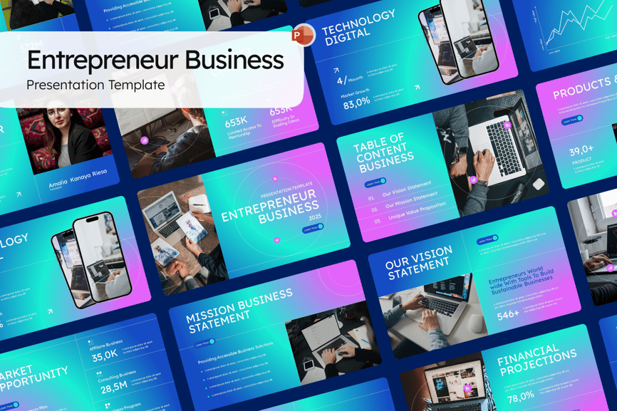 使用企业家商业 PowerPoint 演示文稿模板,将您的商业理念从愿景变为现实。这款模板专为企业家、初创企业、小企业主和创新者设计,可帮助您进行精彩的演示文稿,吸引投资者、推销新想法并自信地展示您的商业战略。该模板包含完全可编辑的幻灯片,涵盖了制作引人入胜的商业演示文稿的所有要素。从公司概况、问题与解决方案、商业模式、市场分析、竞争对手研究、增长战略到财务预测,每张幻灯片都经过量身定制,旨在帮助企业家清晰、有力地沟通。现代专业的设计确保您的内容脱颖而出,而可编辑的信息图表、图表、时间线和模型则使数据驱动的故事讲述变得轻松便捷。无论您是在准备投资者推介演示文稿、商业计划书还是初创企业战略演示文稿,这款模板都是您成功的必备工具。它包含专业设计的幻灯片,可用于展示您的公司概况、价值主张、问题与解决方案分析、目标市场、商业模式、竞争格局、财务预测以及团队介绍。它采用现代布局、视觉冲击力强的图形和可编辑图表,增强了叙事和数据可视化的效果。该模板可完全自定义,适合任何行业,助您打造引人入胜、成果显著的宣传方案。适用于创业者商业PPT、初创企业宣传演示文稿模板、创业者演示幻灯片、小型企业PPT模板、投资者宣传PPT、商业战略演示文稿、创业者计划幻灯片、现代商业PPT